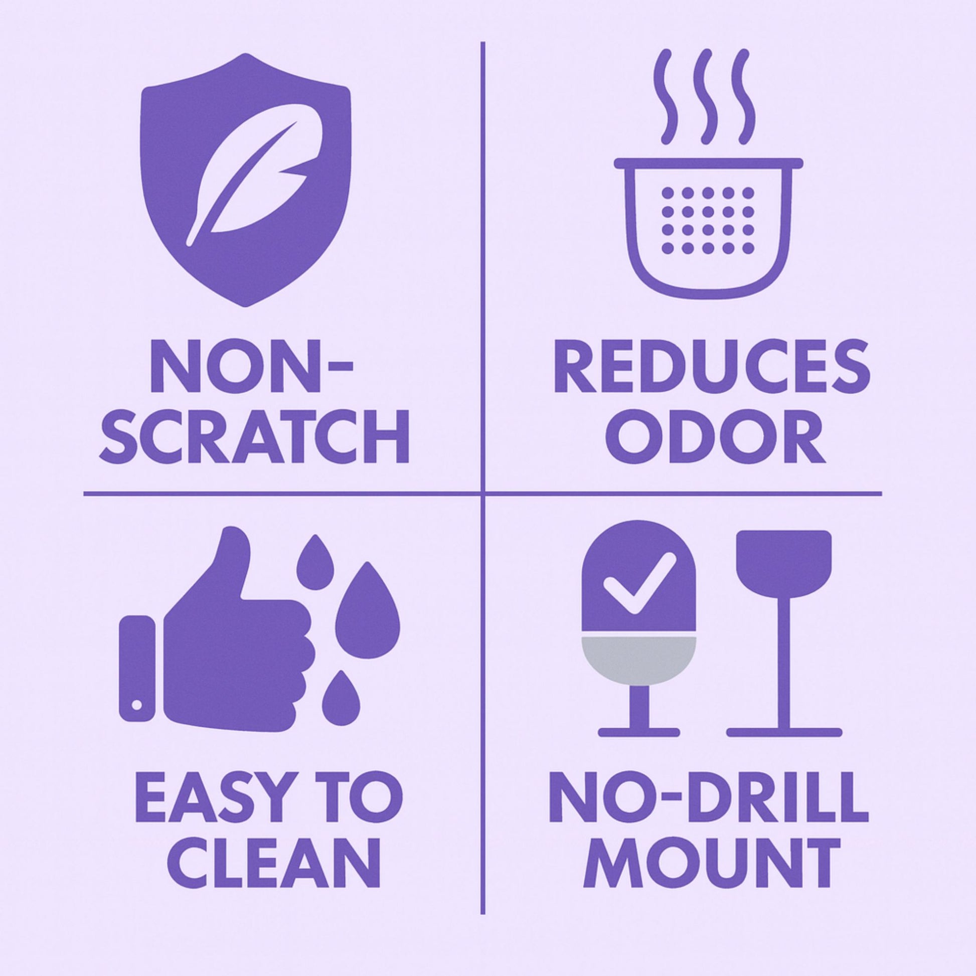 - QUICK-DRY HOLDER — Ventilated base drains fast, reduces odor, and prevents pooling.